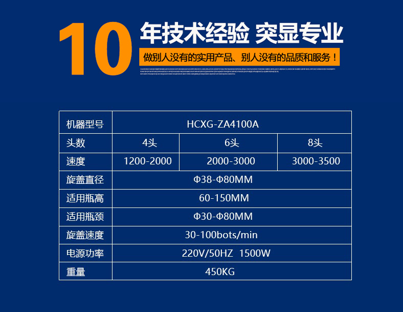 6.旋蓋機(jī)構(gòu)高度可快速調(diào)節(jié),可適用相同口徑、不同高度的瓶子旋蓋;更換部分零件即可實(shí)現(xiàn)不同瓶徑、不同口徑的旋蓋,更換快捷方便。