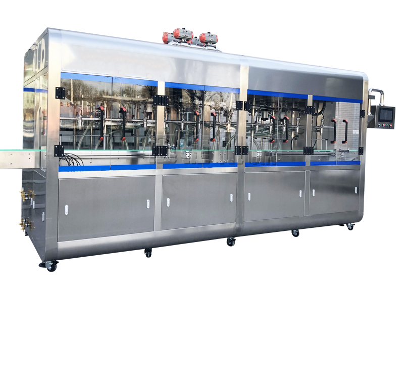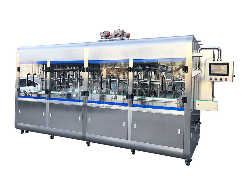 灌裝機儲油箱部分與灌裝機連接法蘭保持原位置,避免沖洗,避免雜質(zhì)進(jìn)入;儲油箱容積≥600KG,內(nèi)部設(shè)有阻擋板,避免油品輸入過程油品外冒,同時保證灌裝精度;儲油箱位置設(shè)在灌裝機頂部,自帶可視液位計,頂部箱蓋大包圍設(shè)計并且可以打開,具備排氣功能(排出氣泡等);灌裝頭整體上升方式平穩(wěn),不產(chǎn)生震動,高度及寬度可調(diào)。