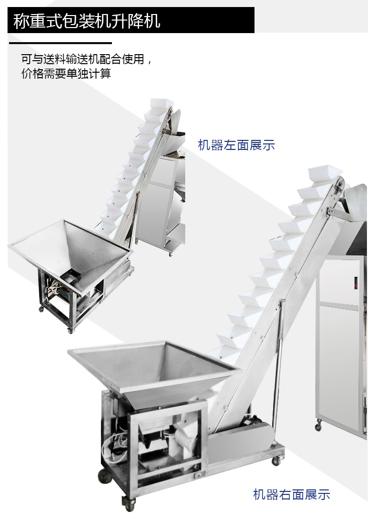 稱重包裝機針對包裝對象的形態(tài)類別可分為顆粒稱重包裝機、粉劑稱重包裝機、全自動稱重包裝機、食品稱重包裝機等,稱重包裝機稱重一字的意義是非常重大的, 包裝機帶有了稱重的標志表明包裝機的包裝計量更加的準確,相對一般包裝機的突出的特點是多添加了包裝秤,保證被包裝對象在這里得到很好的計量稱重,計量 的準確性,大大的保證了消費者的利益,同時本款稱重包裝機采用不銹鋼的材質(zhì),清洗護理更加方便,同時本款稱重包裝機和其他的機械如封口機、噴碼機、貼標 機、打包機等可形成便捷的包裝機生產(chǎn)線。