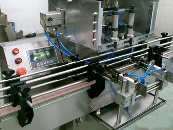 本機(jī)與物料接觸均為不銹鋼制作,完全符合GMP標(biāo)準(zhǔn)??焖倩罱舆B接,拆洗方便,灌裝量、灌裝速度均可調(diào)節(jié),更 換不同規(guī)格形狀的瓶子,不需更換零件,調(diào)整容易。另灌裝頭設(shè)有防滴漏裝置,灌裝無拉絲、滴漏;有瓶灌裝、無瓶不灌裝;設(shè)有計(jì)數(shù)功能,能準(zhǔn)確顯示當(dāng)前產(chǎn)量、 前班產(chǎn)量;并備有自動(dòng)加料控制接口,實(shí)現(xiàn)對(duì)加料的自動(dòng)控制。各動(dòng)作平穩(wěn)、準(zhǔn)確無誤,是目前較為理想的機(jī)電氣一體化產(chǎn)品。(該設(shè)備需要配備輔助設(shè)備:真空泵,真空儲(chǔ)氣罐)